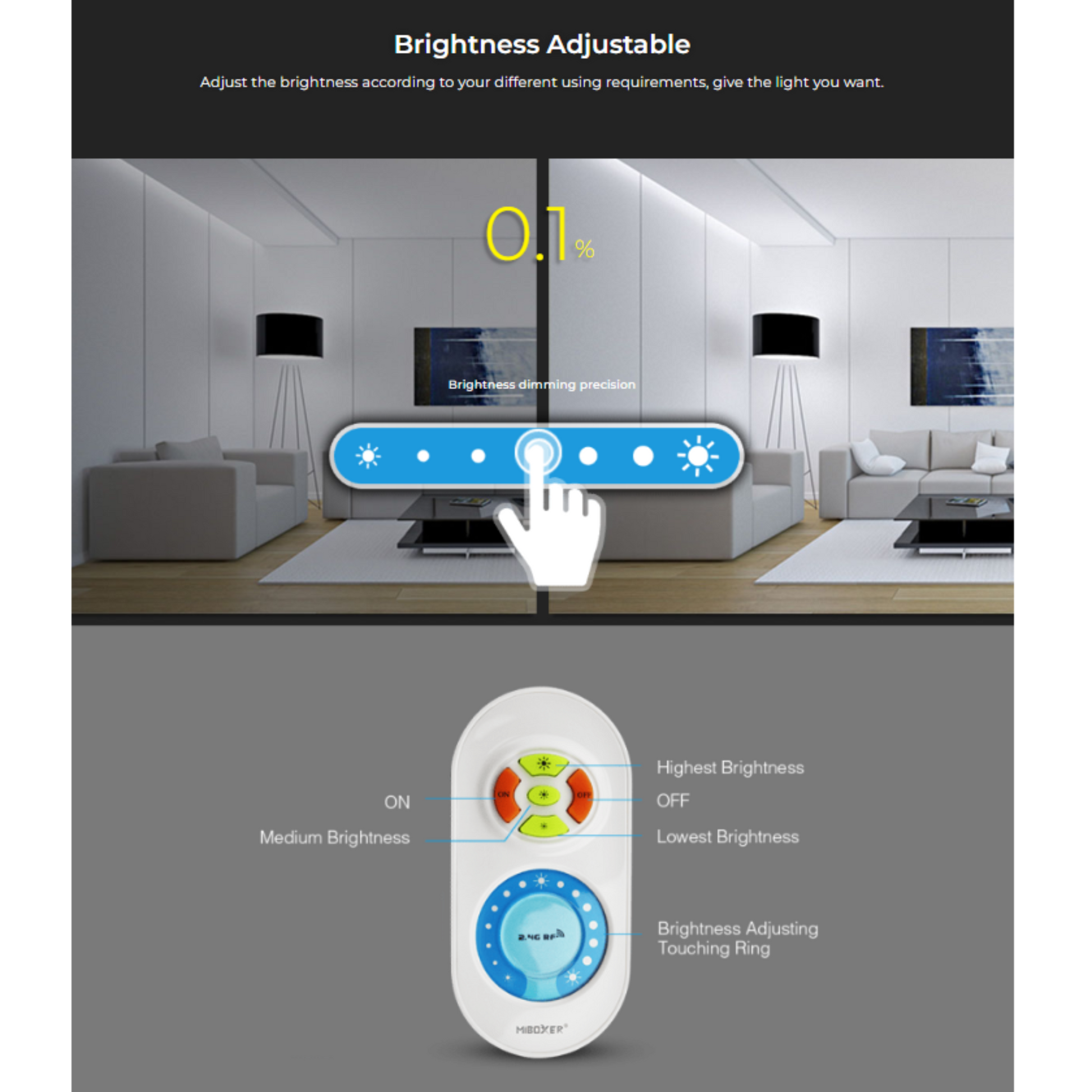 MiBoxer Single Colour LED Strip Controller & Remote Control Set, 2.4G